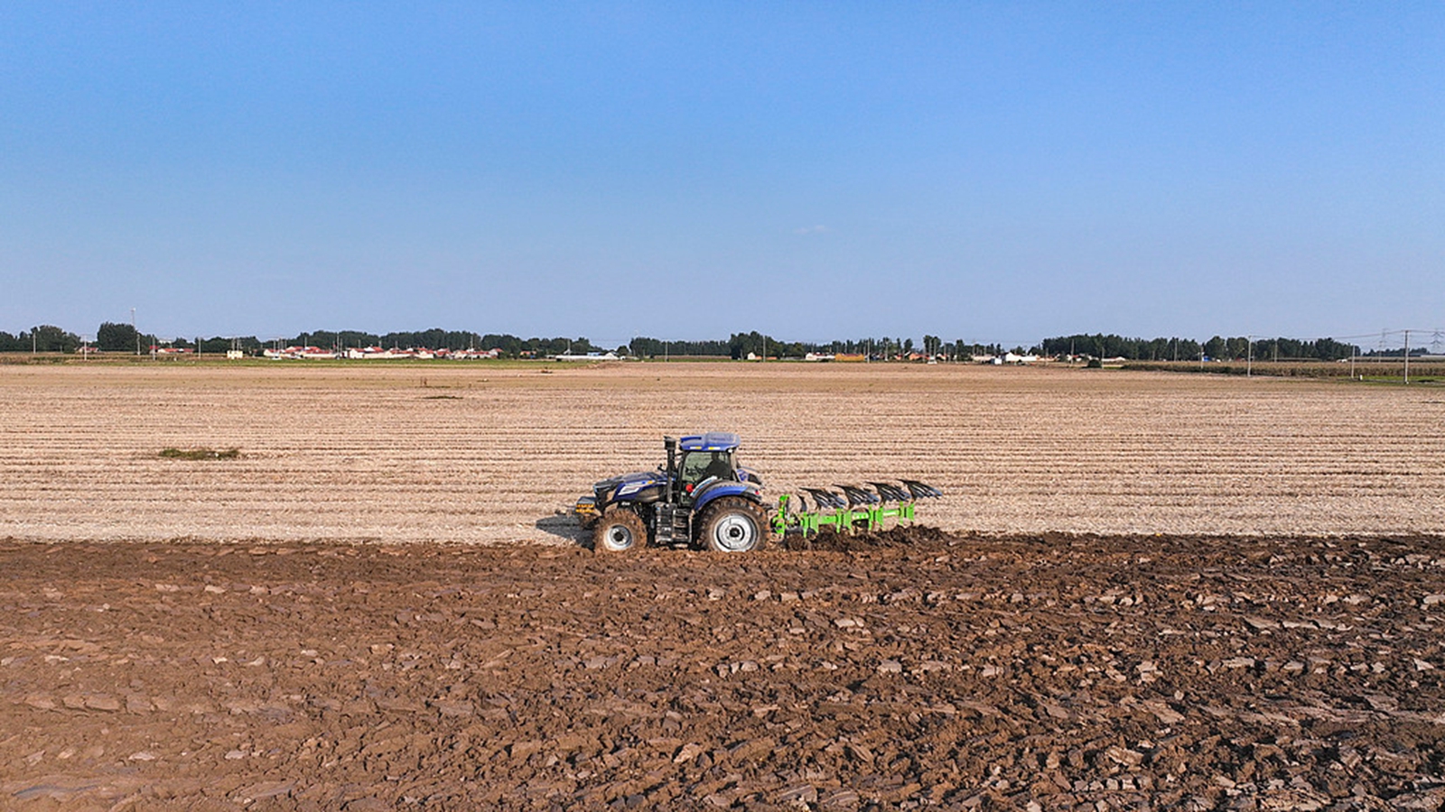 山东东营:农民驾驶拖拉机深耕土地