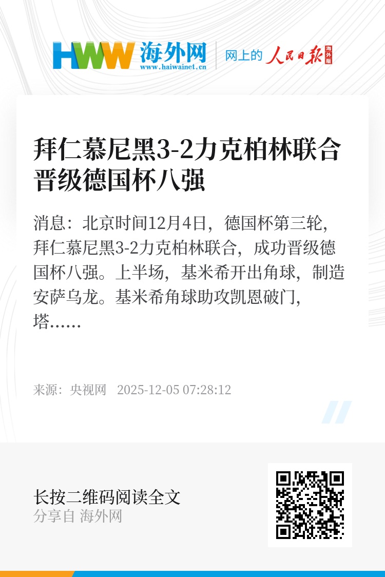 央视网消息:北京时间12月4日,德国杯第三轮,拜仁慕尼黑3-2力克柏林联合,成功晋级德国杯八强。