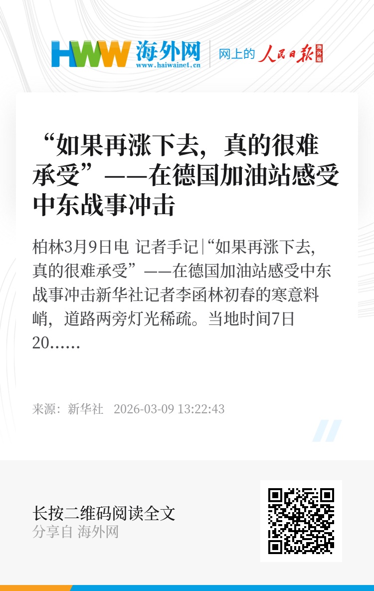 初春的寒意料峭,道路两旁灯光稀疏。当地时间7日20时许,德国首都柏林郊区一处加油站前的汽车排起长队,打破了周末夜晚的宁静。这一颇不寻常的景象,折射出远在数千公里之外的中东战事对德国人日常生活的影响。
